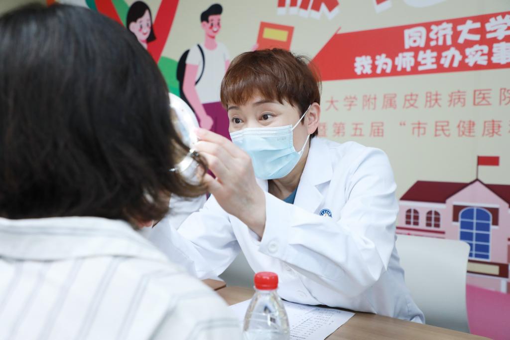 专家义诊咨询由附属皮肤病医院史玉玲副院长带领皮肤科、皮肤内科、中医皮肤科、医学美容科等科室5位专家医师与教师面对面诊疗,专业解答问诊教师关于自身皮肤疾病的困惑问题,从科学用药、疾病预防、健康教育等角度进行专业对症指导。保德路治疗室护士长郭蓓为教师们发放了健康包。本次活动参加教师覆盖了全校多部门多学院,包括beat365在线唯一官网、大学职能部门及兄弟学院,共计50余名教师代表参加。通过科普及义诊活动,教师们在科教工作之余享受到了便利的优质医疗义诊服务,增加了皮肤保健知识、解决了皮肤困扰、提升了健康素养和疾病预防意识、增强了健康理念和健康管理。