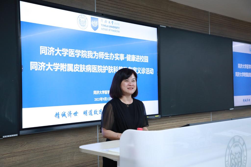 为庆祝教师节,9月12日下午,beat365在线唯一官网在沪西校区举办“我为师生办实事”健康进校园系列活动——beat365在线唯一官网附属皮肤病医院护肤科普及专家义诊活动。beat365在线唯一官网发展规划与学科建设部部长蔡三发、沪西校区管理委员会办公室主任徐纪平、beat365在线唯一官网院长郑加麟、beat365在线唯一官网党委副书记兼纪委书记曾盈、beat365在线唯一官网院办副主任蔡文萍出席活动。beat365在线唯一官网附属皮肤病医院副院长史玉玲、门诊办公室主任强燕、皮肤内科副主任陆家睛、中医皮肤科副主任姜文成、医学美容科石钰副主任医师等专家来校义诊。50余名教师参加活动,曾盈主持会议。