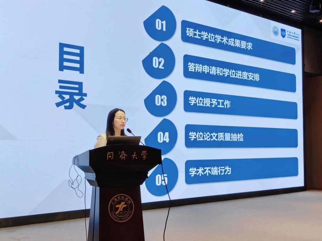在培训会的总结发言中,余佳主任要求新生们务必在学习中投入更多精力,掌握好临床和基础研究的方法,做好临床与科研工作的时间管理。余主任寄语新生,希望大家以同济为家,勤于探索,以奋发有为、开拓进取的精神面貌开启研究生阶段的生活。