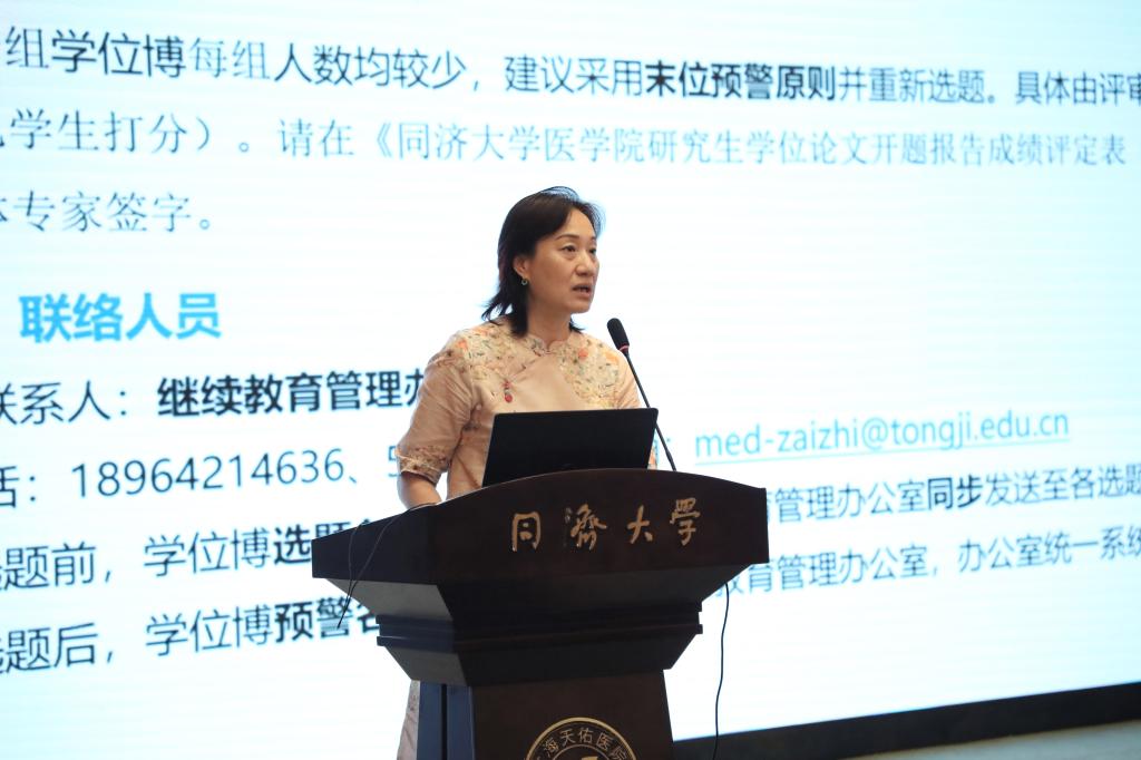 继续教育管理办公室主任李萍老师介绍了本次学位博集中论文选题工作和本年度学位论文论文质量复核工作的具体安排。并概述了beat365在线唯一官网学位博培养宗旨和12年成效,重点解析学位博全过程管理,通过奖惩结合,同时以导师、院、系三方合力,共同促进培养质量的提升。