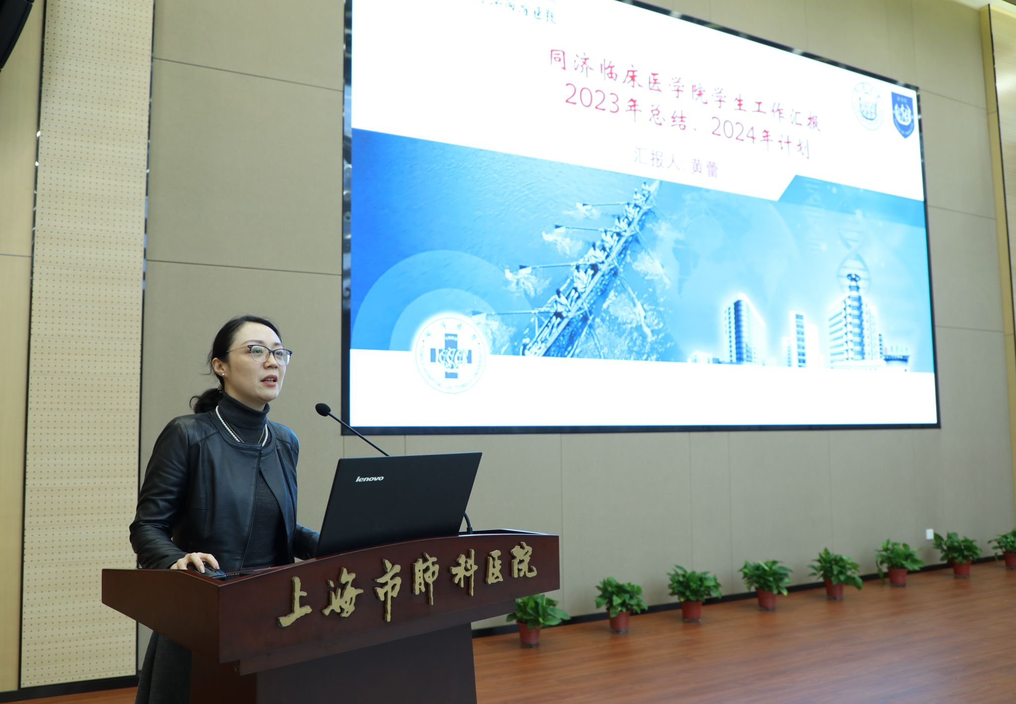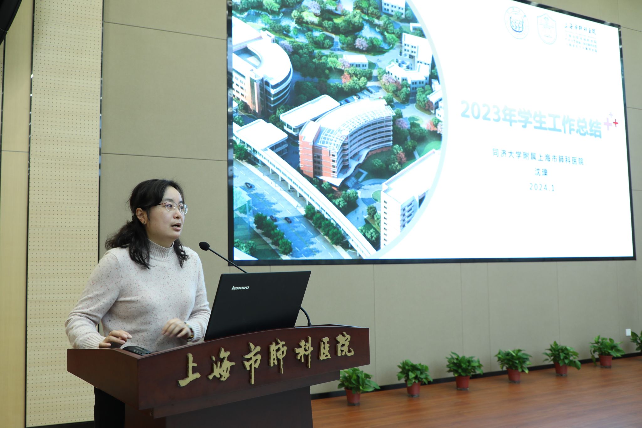 陶蓉首先对各位领导老师们的到来表示热烈欢迎。她谈到,2023年是上海市肺科医院建院90周年的喜庆年,而后从教学质量、科研成果、学工成效等方面对医院的情况作了介绍。